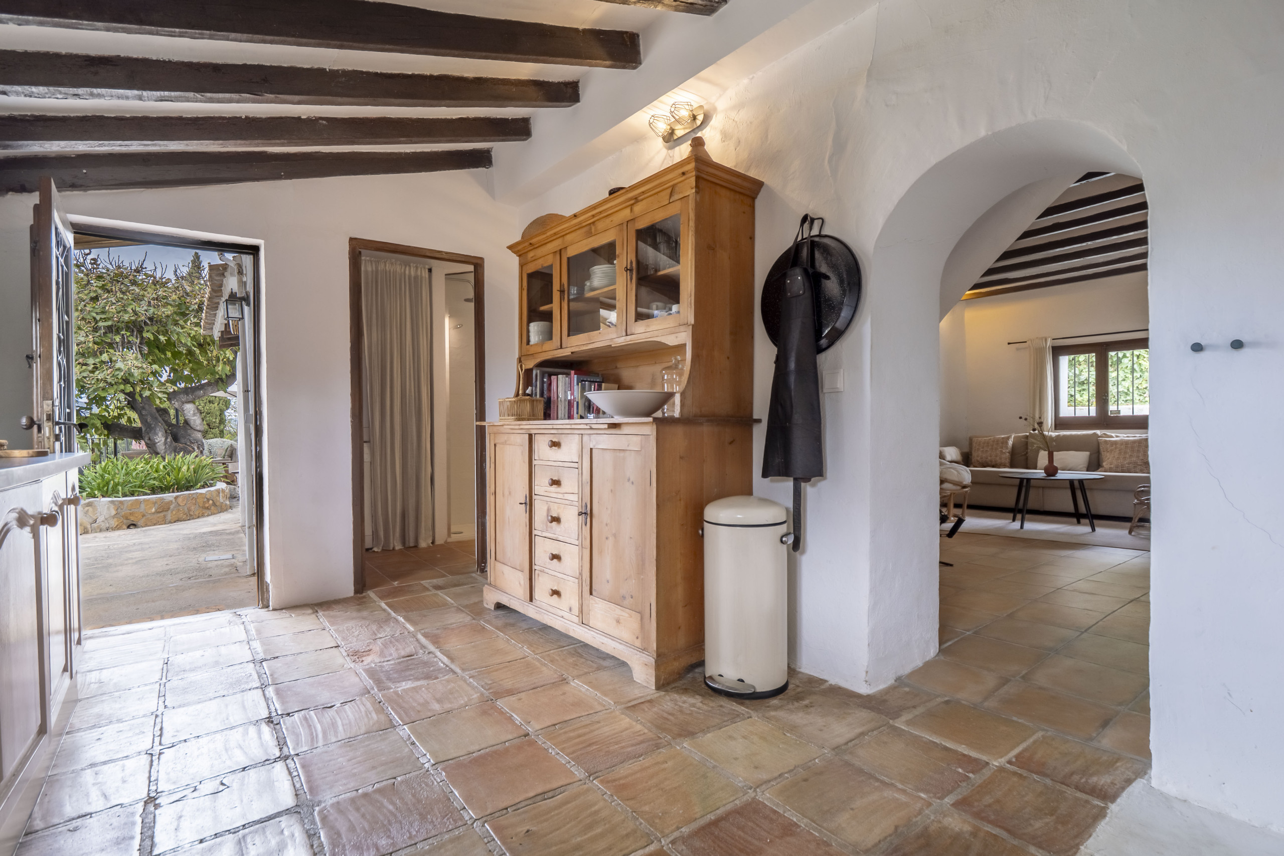 Buiten is het fantastisch. De finca is gelegen op een prachtige plek met overal groots uitzicht op de bergen en op de zee, ook vanuit het moderne zwembad met het zonneterras. Zowel in de schaduw (onder een prachtige veranda) als in de zon is het heerlijk toeven. Het leven speelde zich dan ook vooral hierbuiten af, zelfs in het vroege voorjaar. Met name de verschillende zit- en loungeplekken met overal het geweldige uitzicht maakte ons verblijf uniek. Een locatie om van te houden! Wij komen dan ook zeker terug. - Cora |