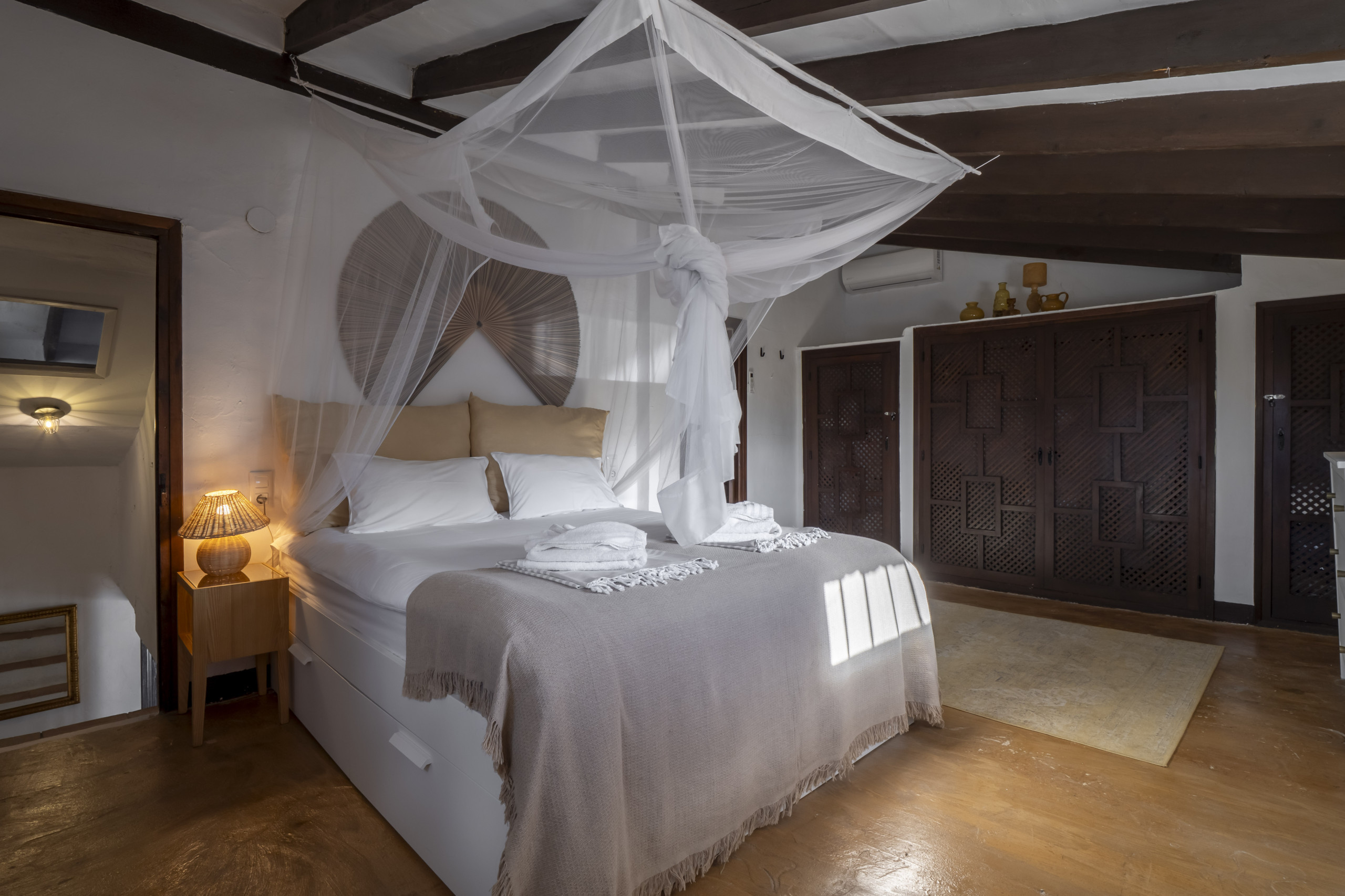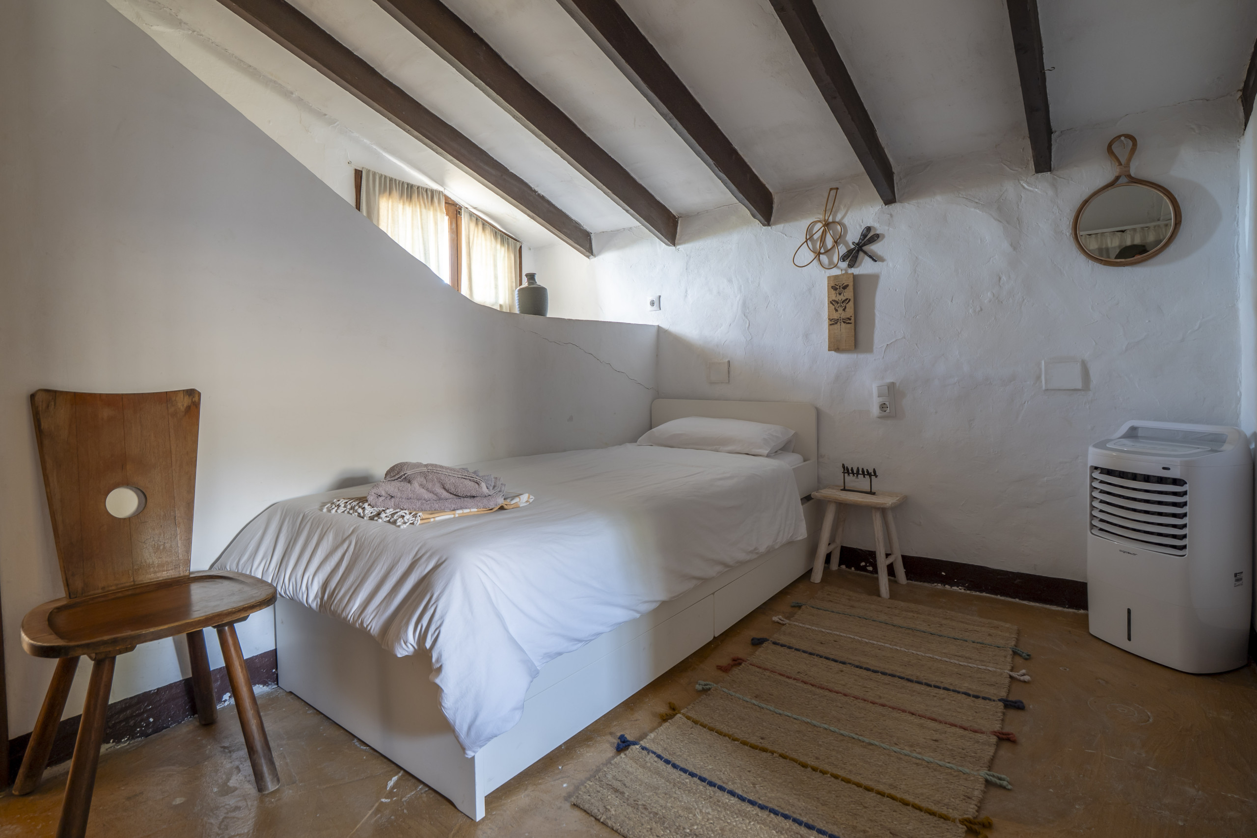 authentiek, mooi dat je de historie nog herkent zoals de voederbak voor dieren in de slaapkamer. De slaapkamers hebben airco en bevatten verder alles wat je nodig hebt. Prima badkamer en de kbekijk meer
