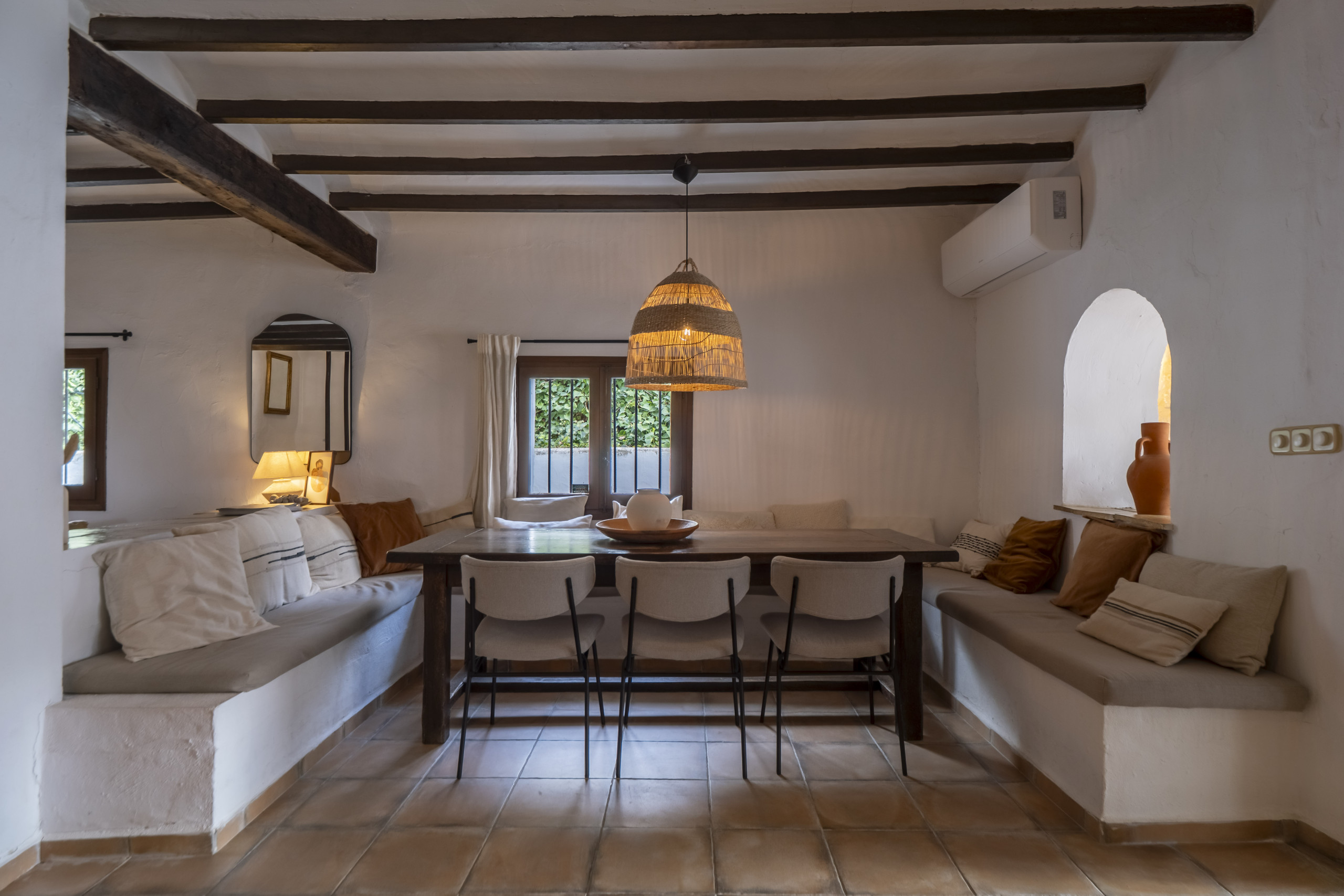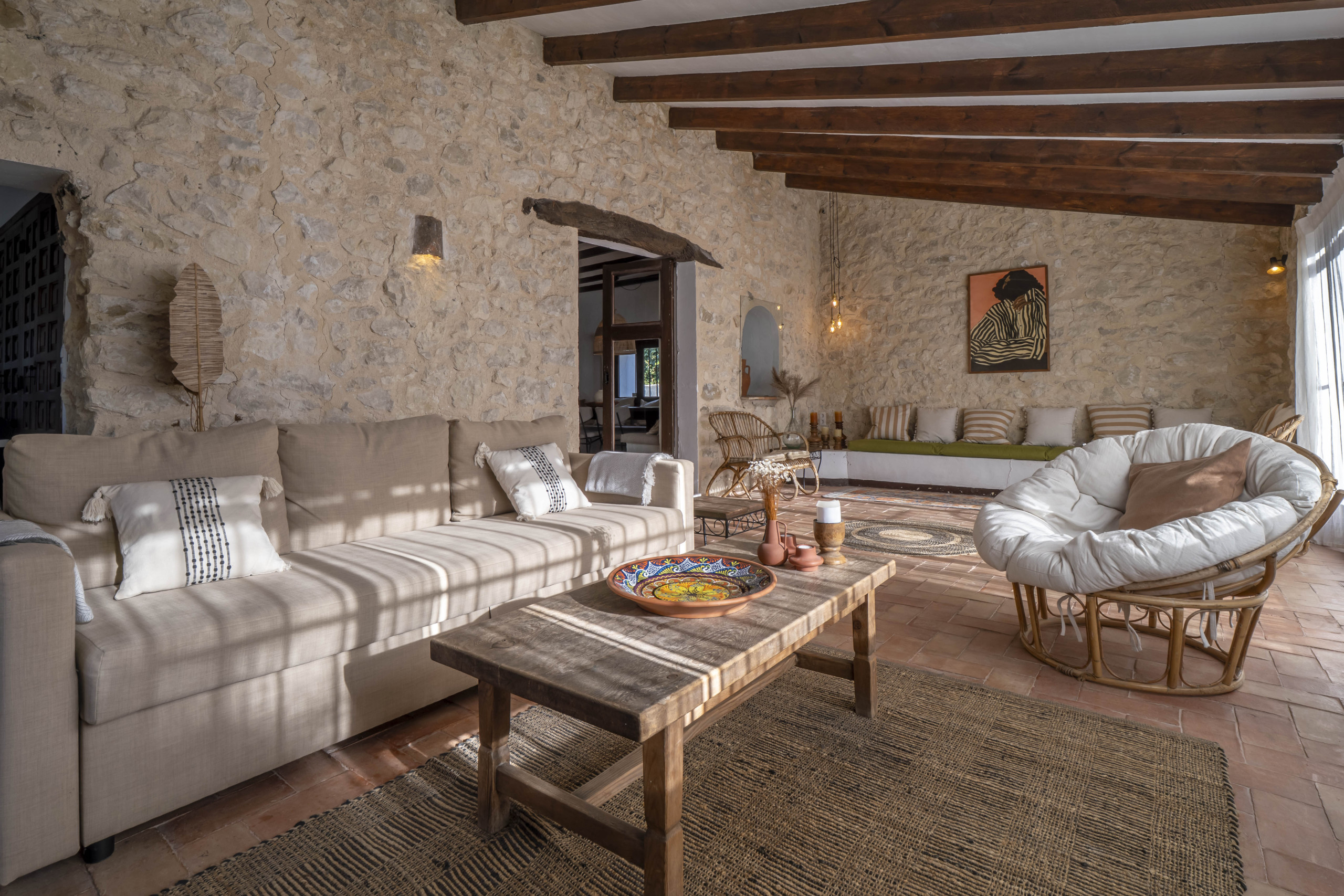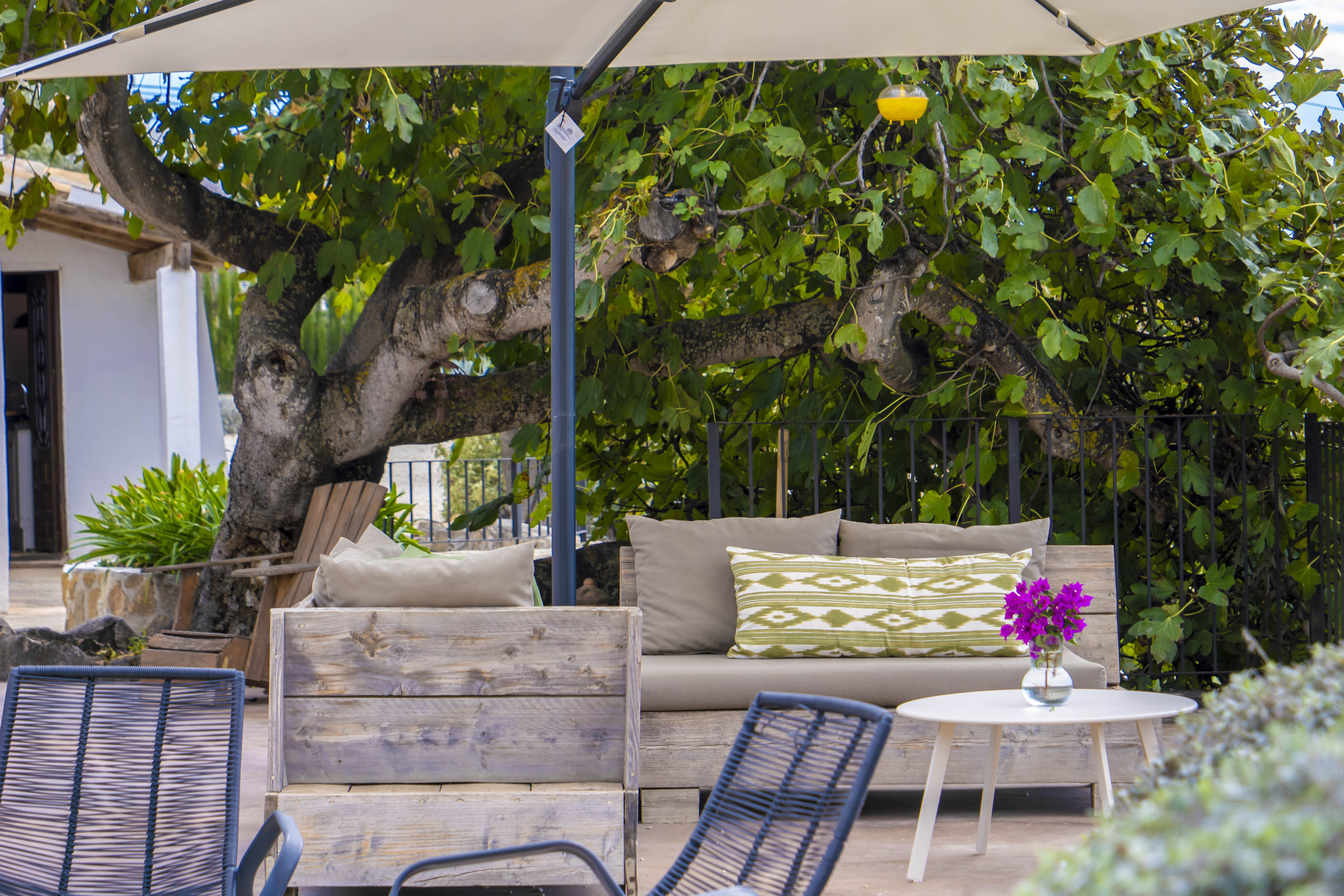 With our family (3 adult children with partners) this was the ideal family home for us. With lots of space, but also privacy, very complete and tastefully decorated. It is an authentic and also comfortable house. Outside is fantastic. The finca is located in a beautiful place with great views of the mountains and the sea, also from the modern pool with the sun terrace. Both in the shade (under a beautiful porch) as well as in the sun is lovely. Life was therefore mostly outside here, even in early spring. In particular, the various seating and lounge areas with everywhere the great view made our stay unique. A location to love! We will definitely return. - Cora |
