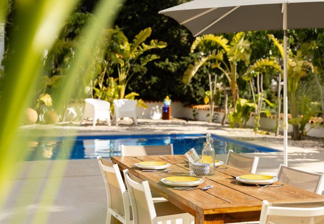 This charming Spanish house, with lovely bedrooms and charming round windows in the living room and conservatory, had an even more beautiful garden and pool!