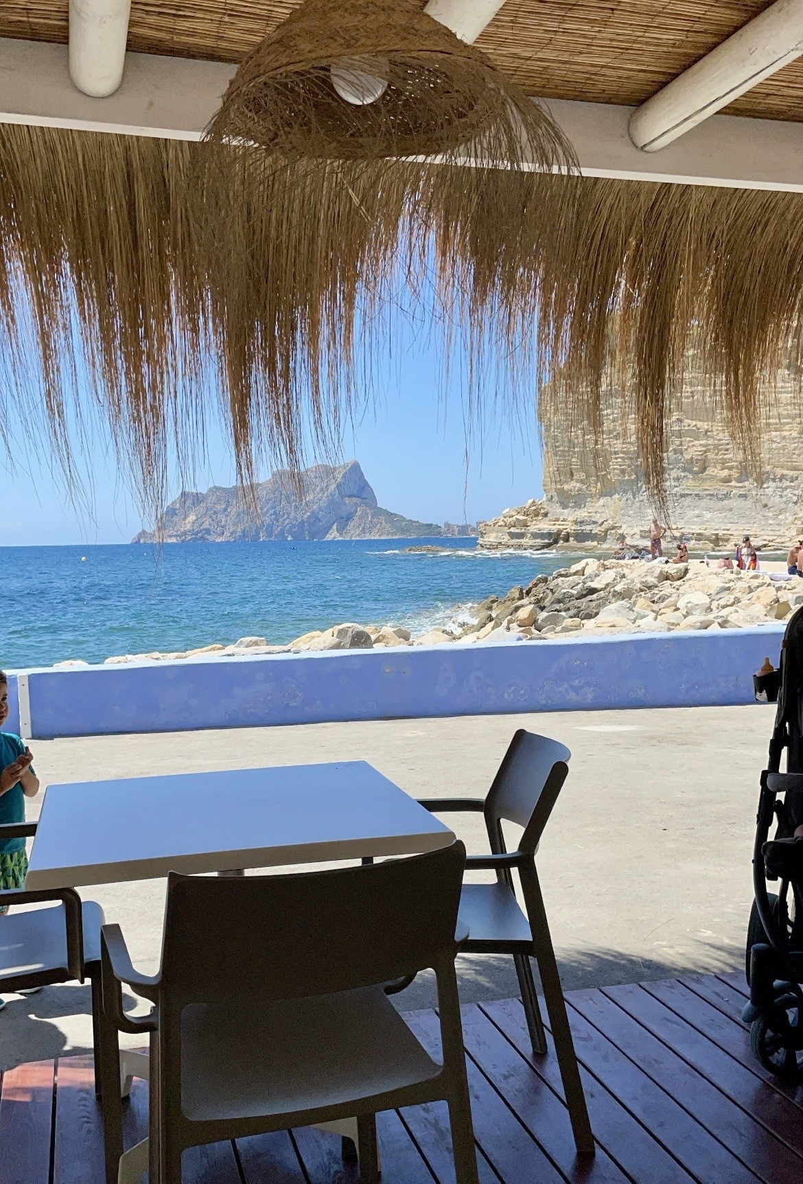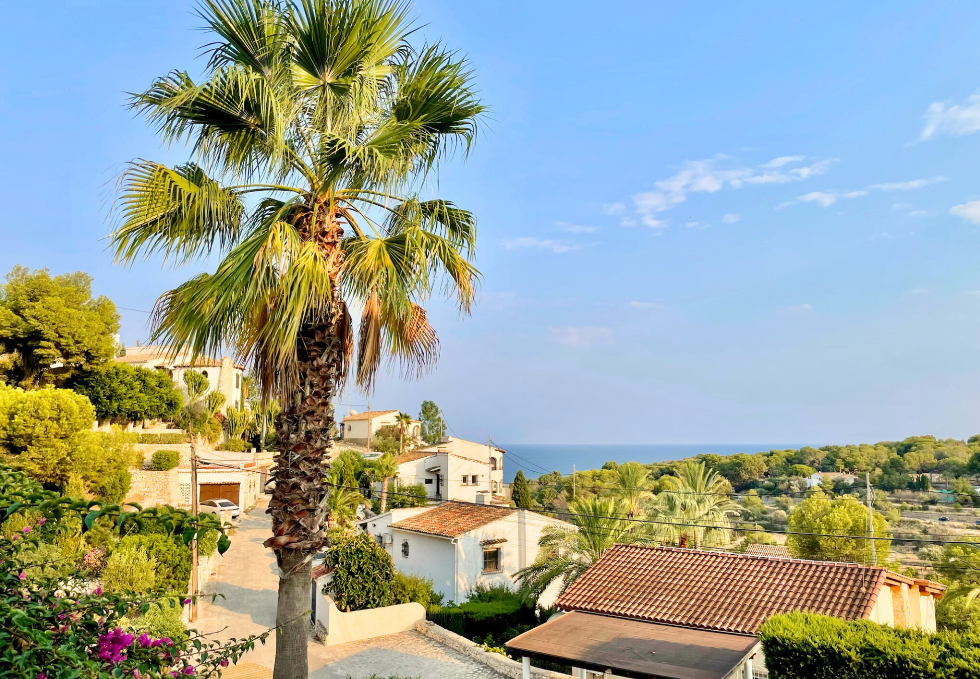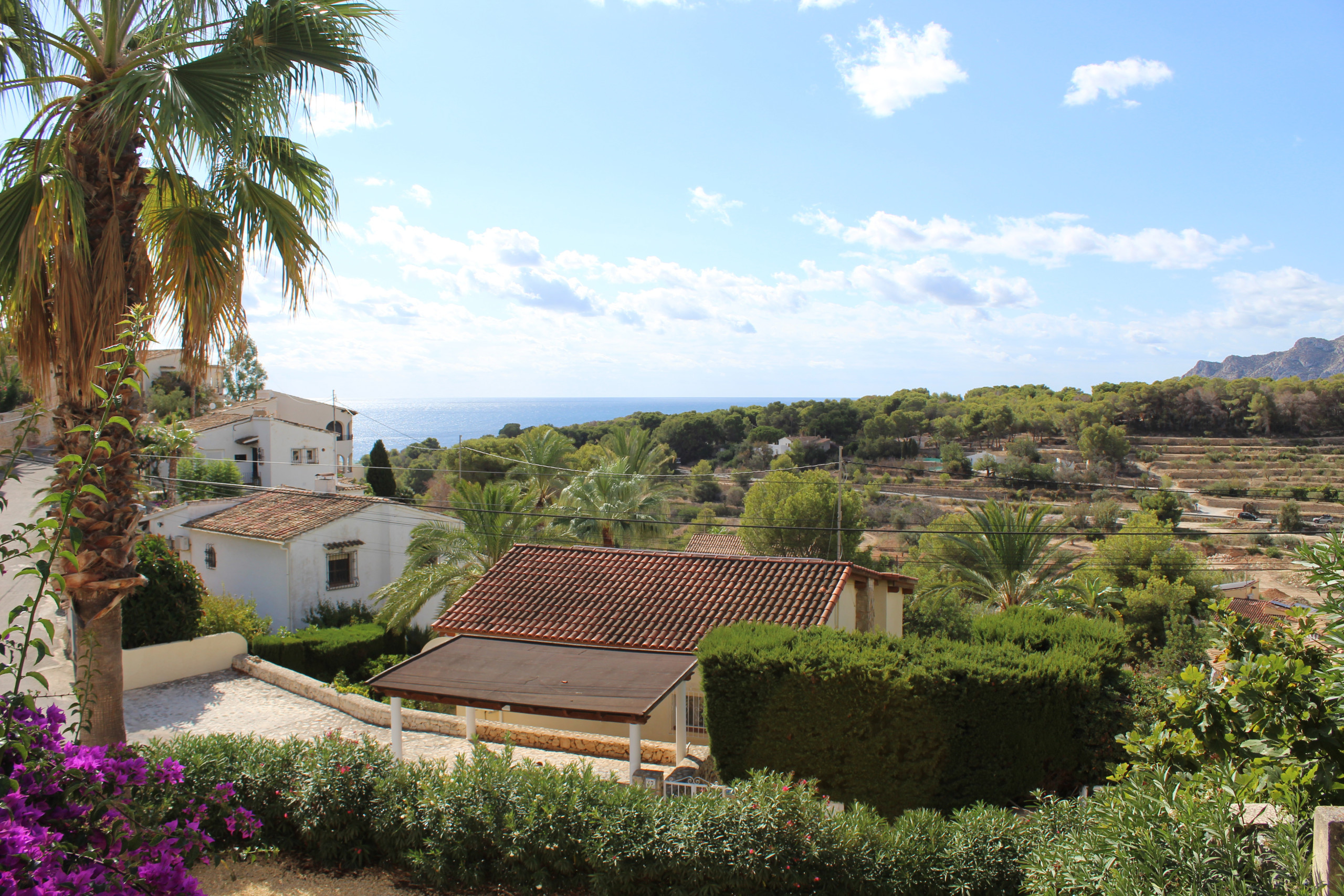 Wandelen naar zee kan in ca. 15 minuten. Houd er rekening mee dat de terugweg langer zal duren vanwege de hellende weg. Stenen strand 1,2 km, zandstrand 1.7km (Playa la Fustera) winkels (Calpe 5 km, Moraira 3,5 km), supermarkt 1,5 km, restaurant 1.3 km, luchthaven Alicante 92 km, luchthaven Valencia 127 km