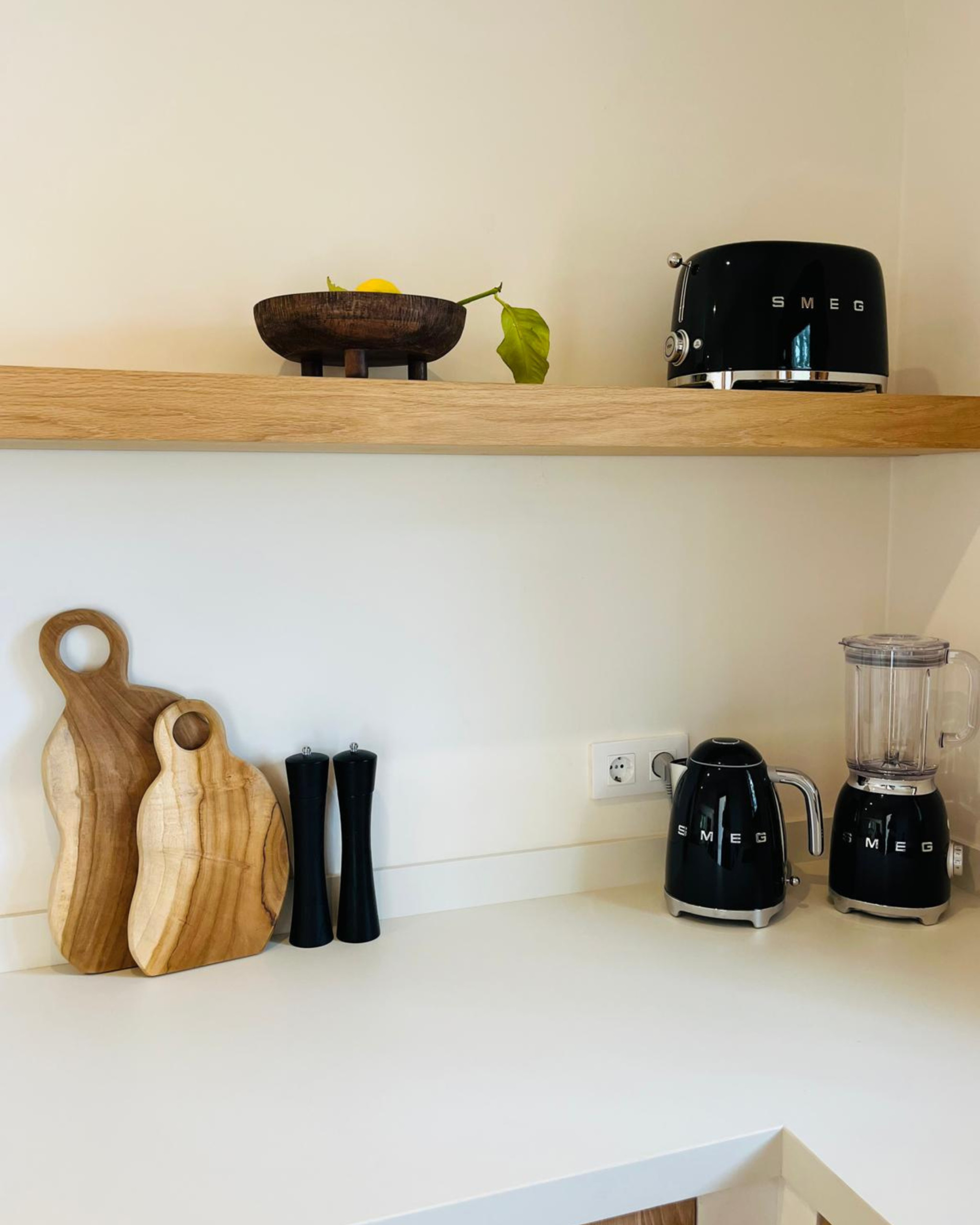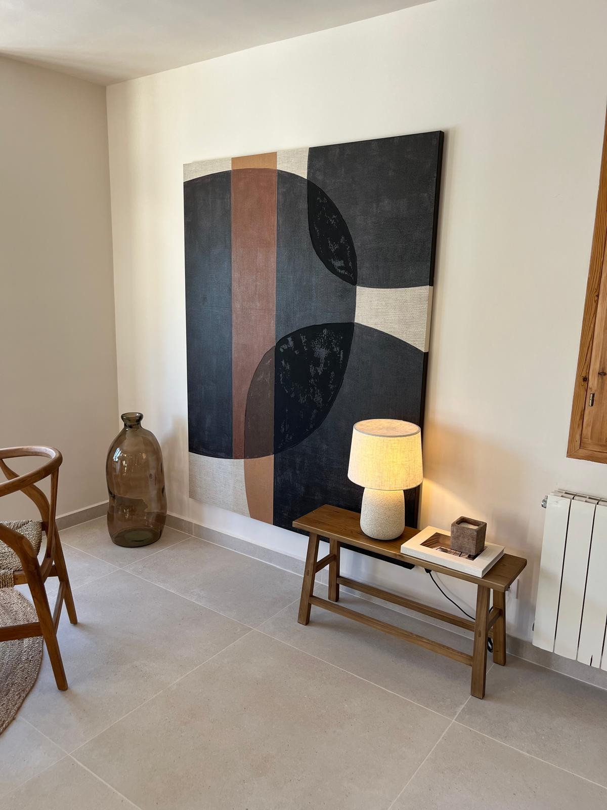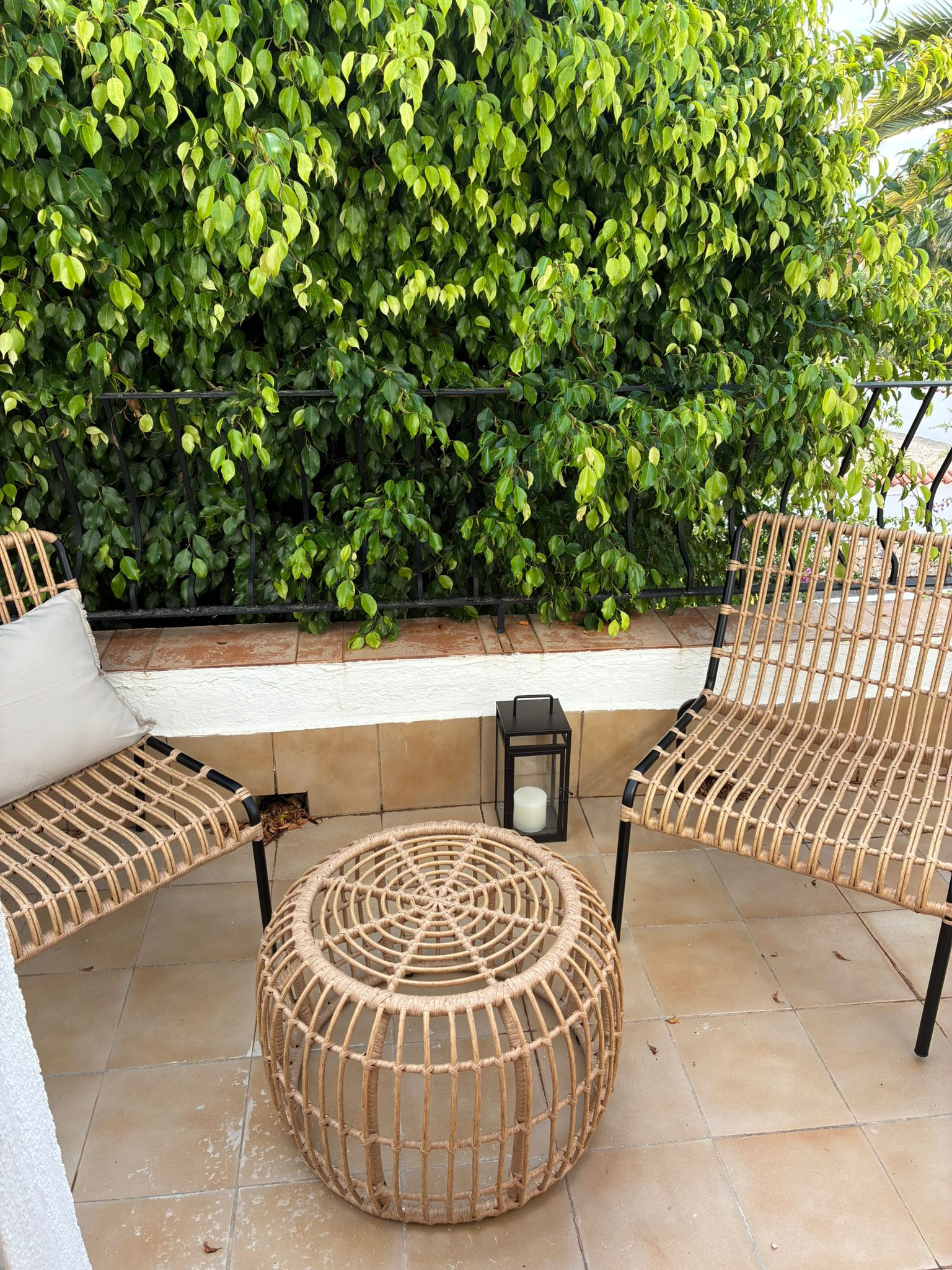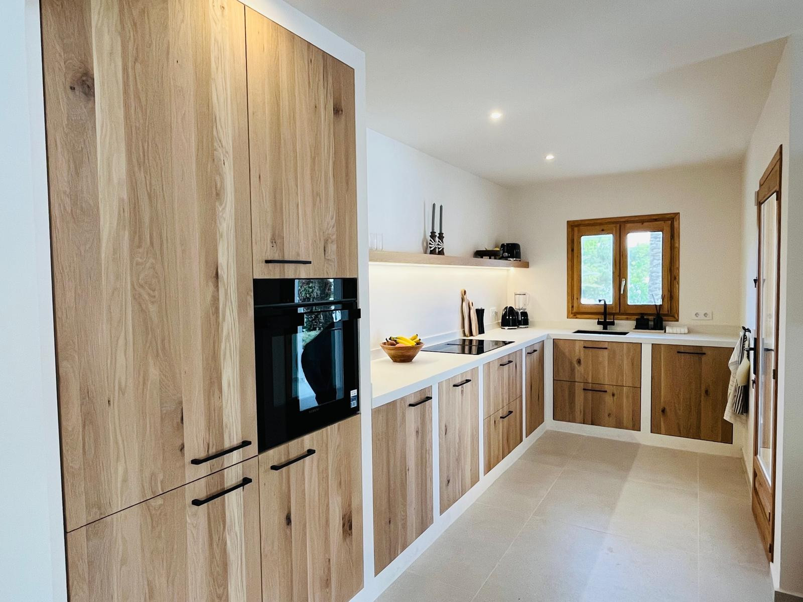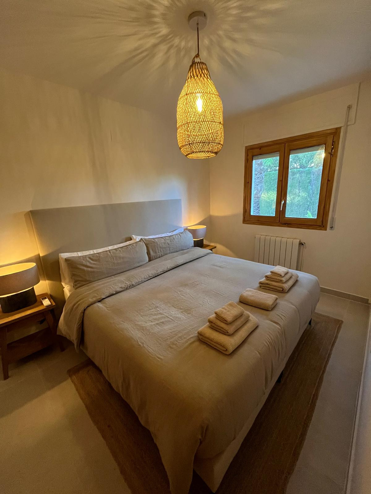 Binnen vind je een lichte, open leefruimte met houtaccenten, dat perfect aansluit bij de Spaanse charme. Er is een woonkamer met comfortabele zithoek en een gezellige eethoek, ideaal om samen te ontspannen.