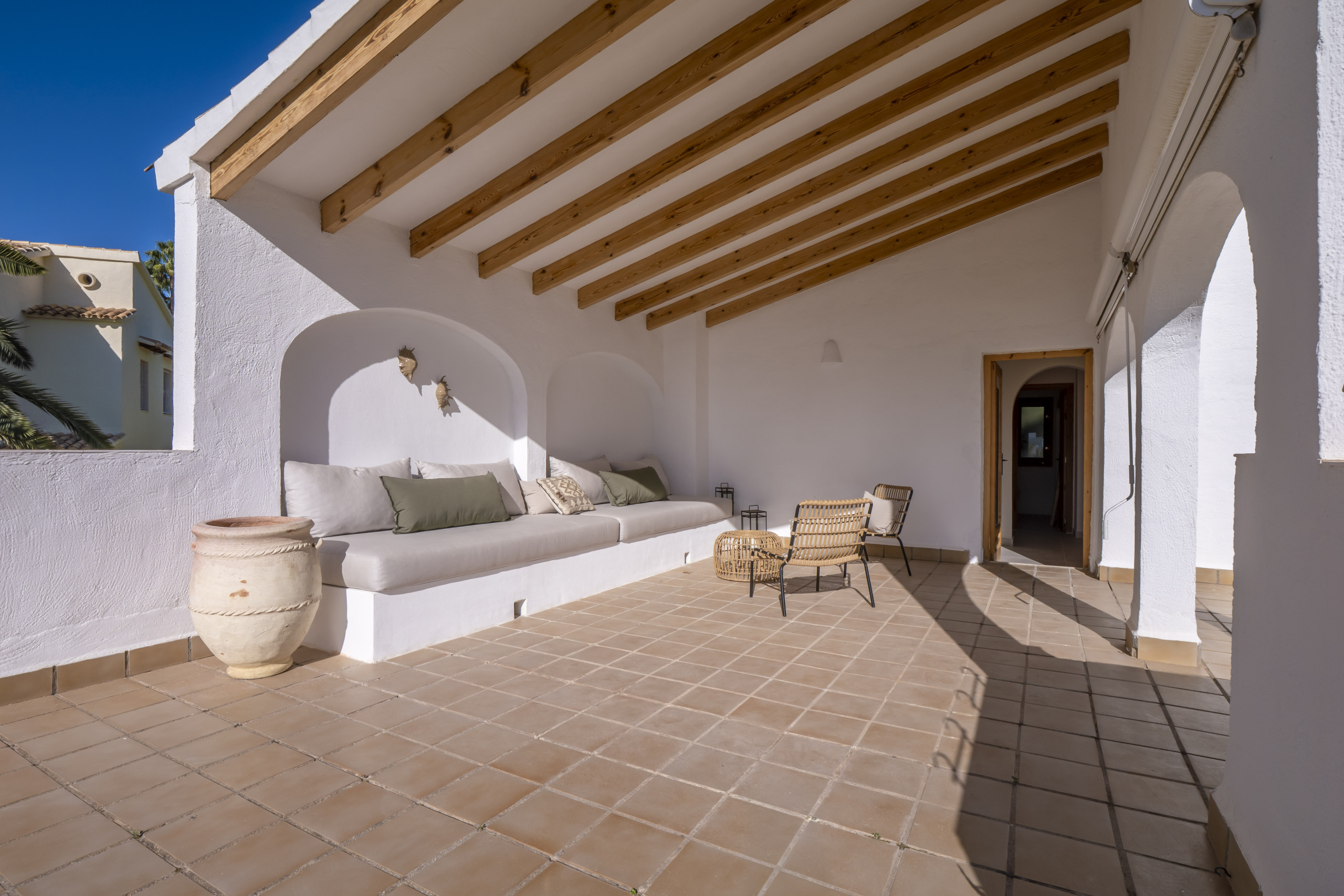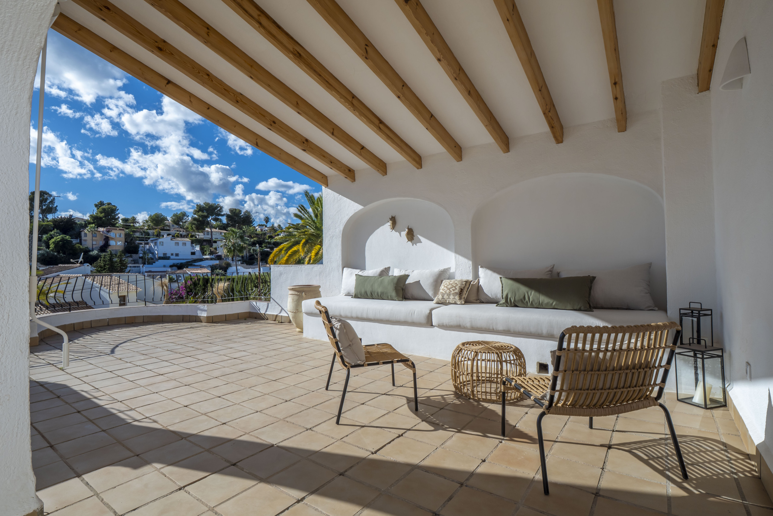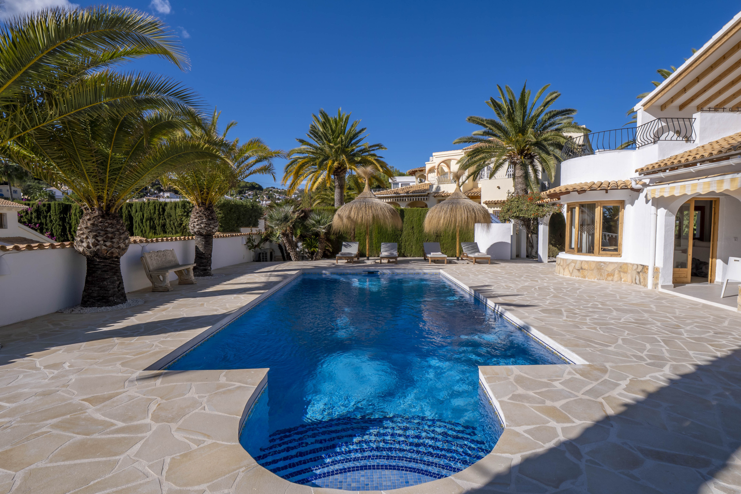 Heerlijk rustig gelegen vind je Villa Costa Palma. Binnen vijf minuten sta je in het gezellige vissersdorpje Moraira met bekende eettentjes zoals Pluk Moraira, The Food Bar en Algas L'Andrago, of wandel naar Cala Baladrar, een serene en schilderachtige baai met het heerlijke strandtentje Olala. Perfect voor wie van rust houdt, maar ook graag de gezelligheid opzoekt.