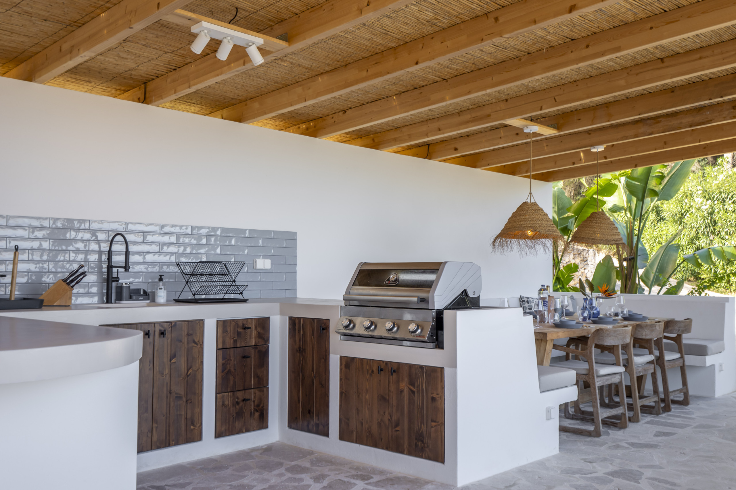 Wat een fijn buitenleven! De tuin van Finca Genciana is ruim, groen en fraai aangelegd met een weids uitzicht op de omgeving en in de verte de zee. Centraal ligt het privé zwembad (5 x 11 m, tot 2 m diep), omringd door zes ligbedden en een buitendouche. In het tuinhuis vind je een complete buitenkeuken met bar, koelkast, barbecue en een eettafel voor 10 personen. Een fijne plek om tot in de avond te genieten van het uitzicht en de stilte. Parkeren kan op eigen terrein, met ruimte voor zes auto’s.