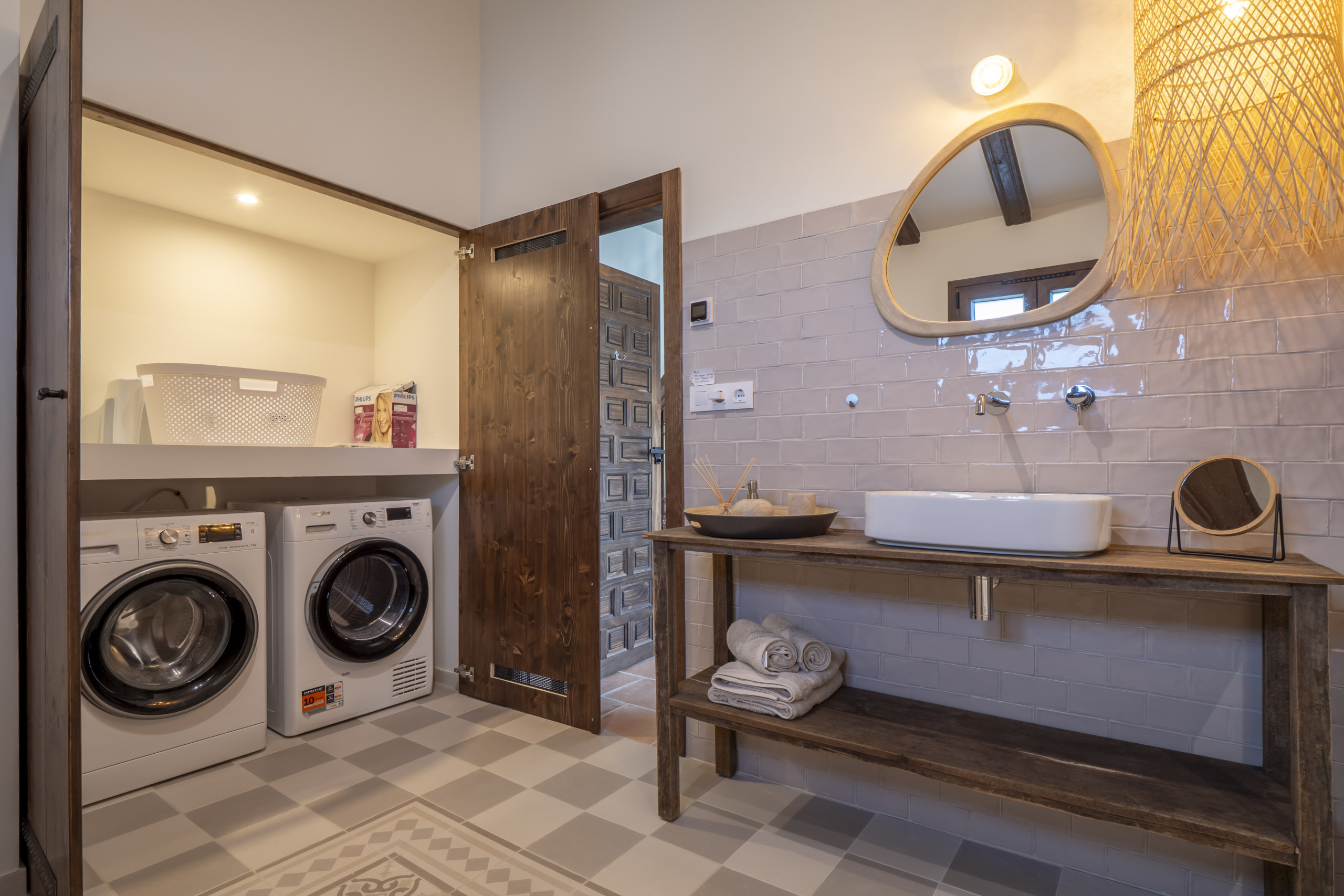 Er is een wasmachine en droogtrommel aanwezig. Het hele huis is voorzien van airconditioning.
