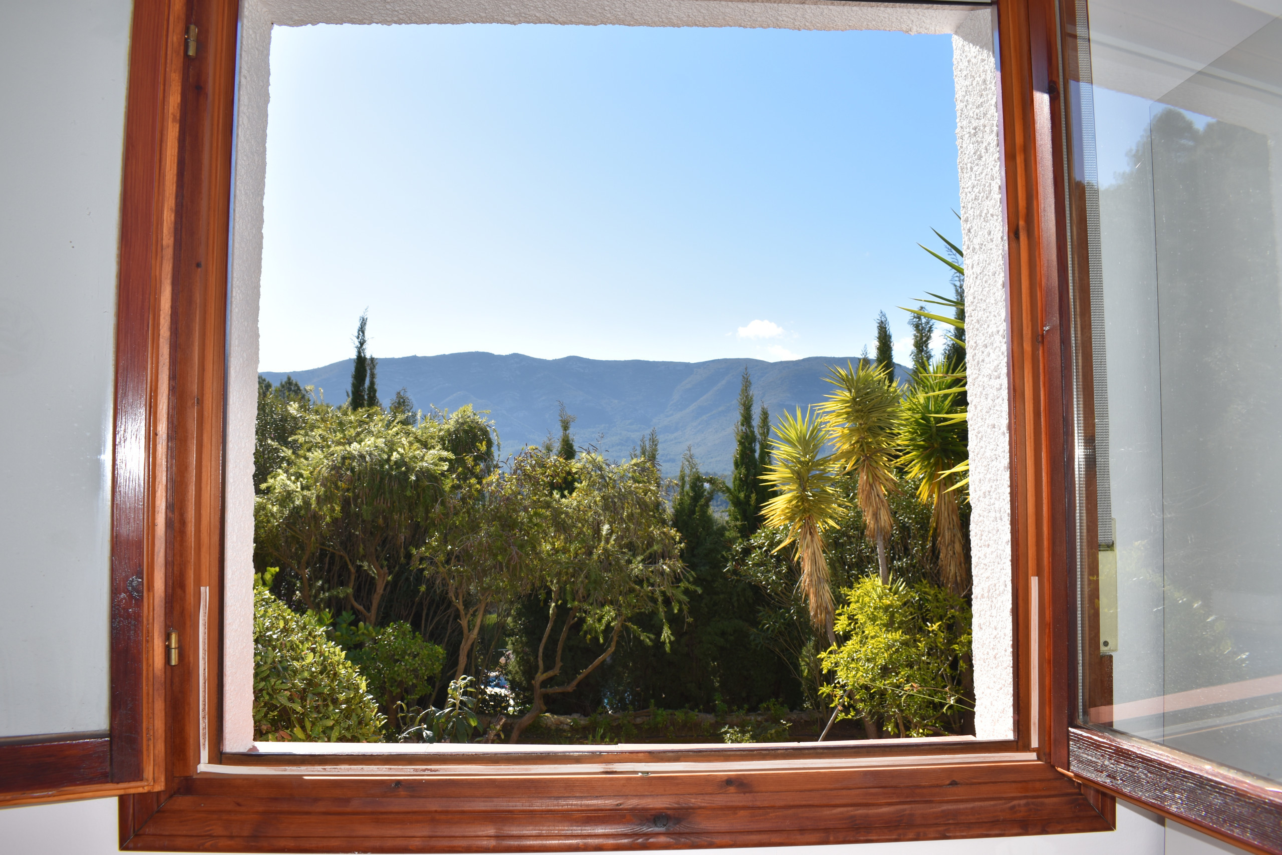 De bovenwoning is bereikbaar via de voorzijde van het huis. Vanaf de privé parkeerplaats loop je via een klein trapje naar de voordeur. Hier kom je direct in de sfeervolle woonkamer met volop lichtinval, airconditioning, een zithoek, een houtkachel, een 6-persoons eettafel en de open keuken. De keuken is ingericht met o.a. een vaatwasser, oven, Nespresso koffieapparaat, en koel-/vriescombinatie. Op deze verdieping vind je 2 slaapkamers en een badkamer. Slaapkamer 1: 2-persoonsbed (180 x 200cm) met inbouwkasten. Slaapkamer 2: twee 1-persoonsbedden (90 x 200 cm) met inbouwkasten. De badkamer is voorzien van een bad, aparte douche, wastafel en toilet. Alle slaapkamers zijn voorzien van airconditioning. Vanuit de woonkamer loop je direct naar de naja met het waanzinnig mooie uitzicht over de groene vallei en de bergen. Heerlijk om hier in de ochtend te ontbijten, een kopje koffie te drinken of gewoon te genieten van de omgeving.